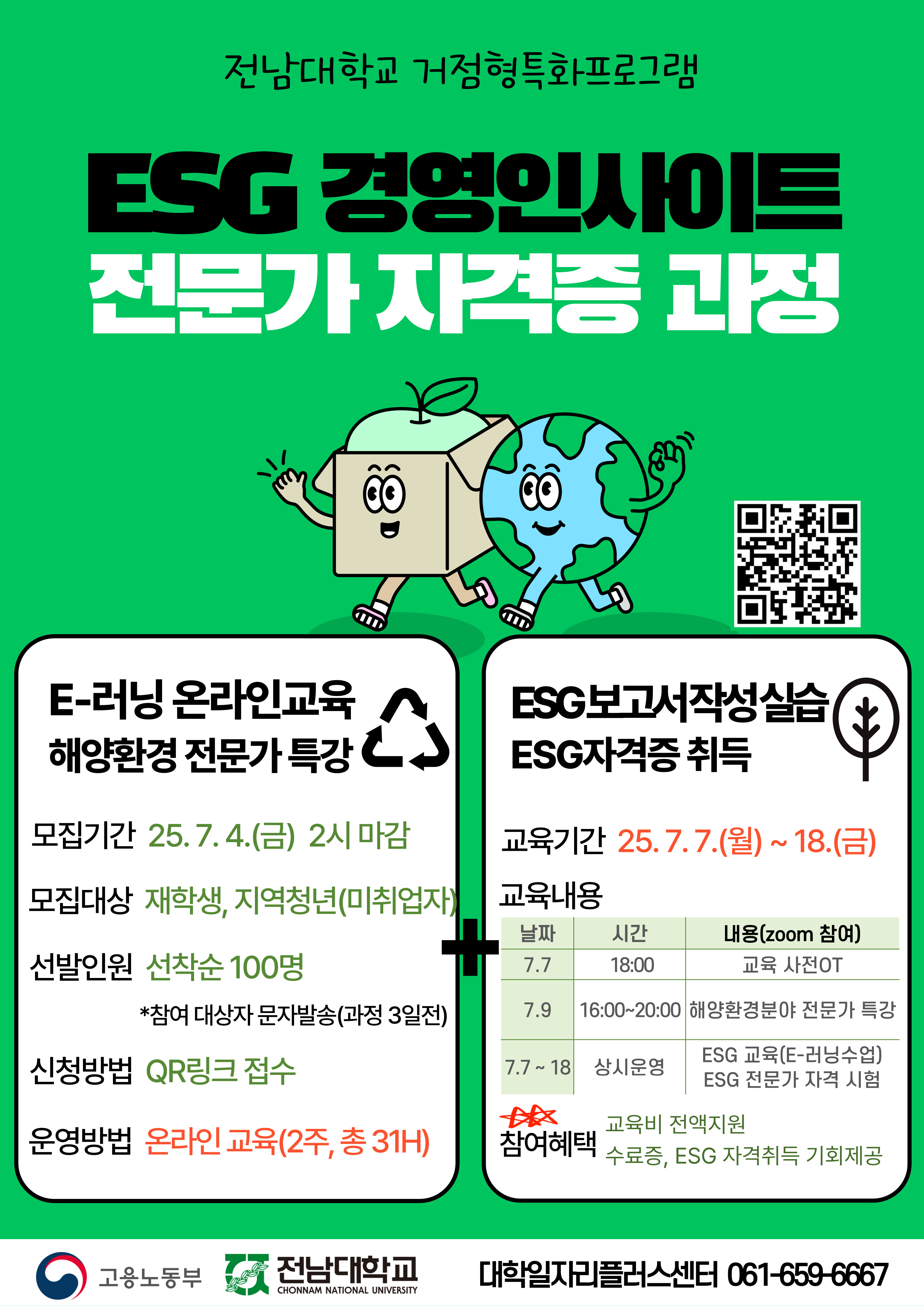 공지사항 전남대 거점형특화프로그램_ESG 경영인사이트 전문가 자격증 과정 안내 작성자 대학일자리플러스센터 작성일 2025-06-30 09:06 조회 157 인쇄 « 의약품 MR/마케팅 직무과정 교육생 모집 안내 2025년 디지털정부 영프론티어과정 교육생 모집 안내 » 목록보기 Powered by KBoard