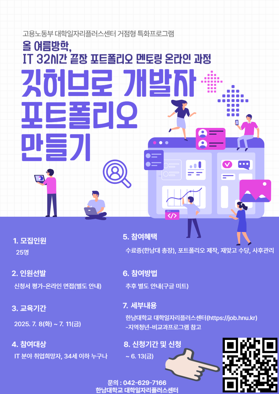 공지사항 고용노동부 대학일자리플러스센터 거점형 특화프로그램_포트폴리오 멘토링 온라인 과정 안내 작성자 대학일자리플러스센터 작성일 2025-05-23 14:26 조회 199 인쇄 « [JOB 콘서트] 무비 JOB GO! 안내 대학일자리플러스센터 안내 » 목록보기 Powered by KBoard