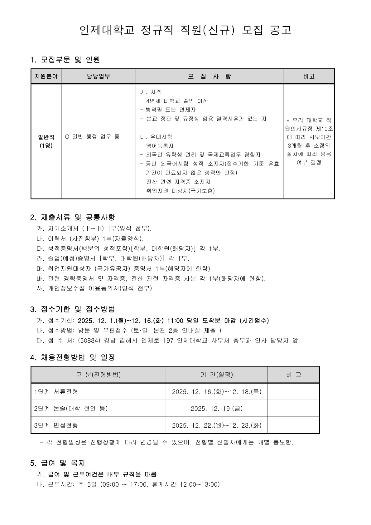 외부채용 인제대학교_정규직 직원(신규) 모집 안내 작성자 대학일자리플러스센터 작성일 2025-12-09 17:52 조회 119 인쇄 « 2025년 청소년사이버상담센터 사이버상담원 채용설명회 안내 조선대학교병원_2026년 신규간호사 모집 공고 안내 » 목록보기 Powered by KBoard